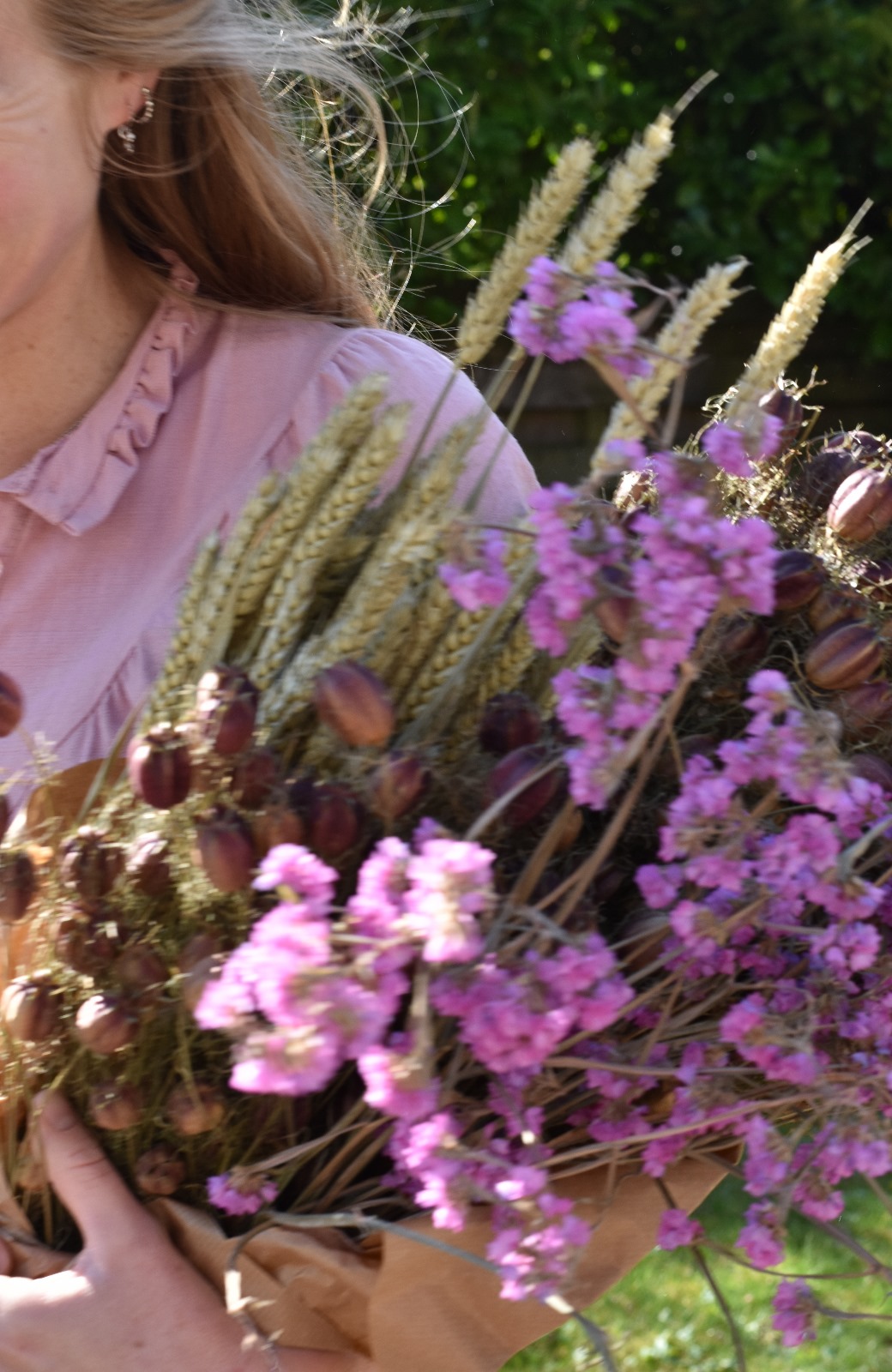 Het geluk stroomt door mijn lijf als ik de aankleding met (droog)bloemen